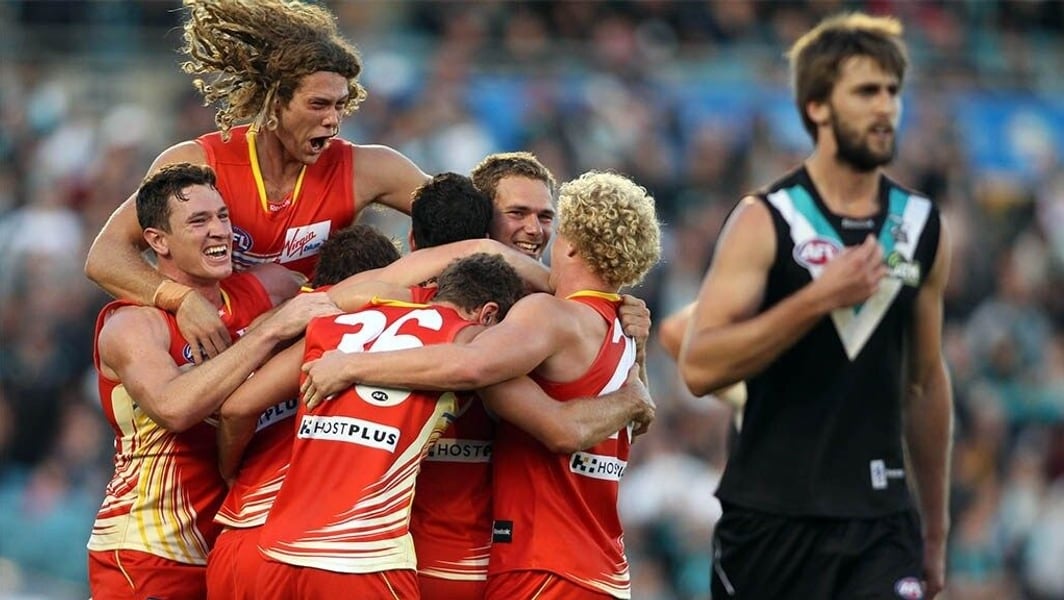 Gold Coast’s first ever win came in unlikely circumstances. In their first season in the AFL, the Suns were 0-3 and staring at another loss, trailing Port Adelaide by 40 points with a minute remaining in the third quarter. A pair of quick goals gave Gold Coast hope before a huge last term. The Suns fought back to within a point before a smothered kick in led to Luke Russell putting them ahead with two and a half minutes remaining, but more drama was to follow. Justin Westhoff took a big mark with seconds remaining and had a shot after the siren, but it went well right as the Suns secured their first ever win.