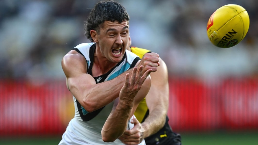 Darcy Byrne-Jones in action during the match between Richmond and Port Adelaide at the MCG in round four, 2026, Picture: Getty Images