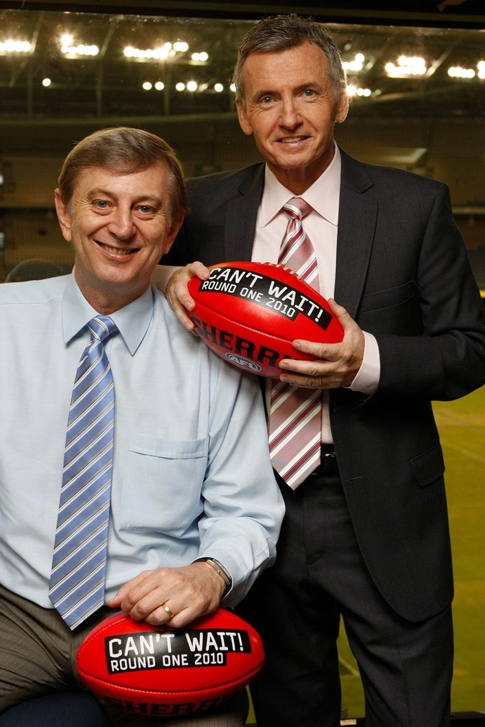 Dennis Cometti and Bruce McAvaney ahead of the 2010 AFL season. Picture: AFL Photos