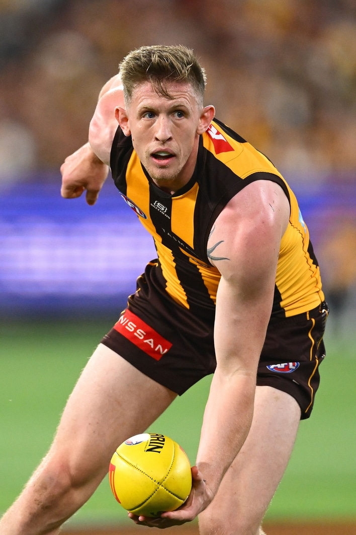 The Hawks put forward their top pick this year, their 2026 first-round selection, a future second-round selection in either 2026 or 2027 and one of pick 62 or young midfielder Henry Hustwaite to land Merrett.