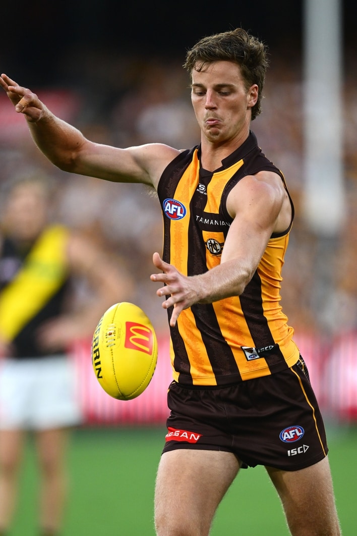 Henry Hustwaite during the round eight match between Hawthorn and Richmond at Melbourne Cricket Ground, on May 4, 2025. Picture: Getty Images/AFL Photos