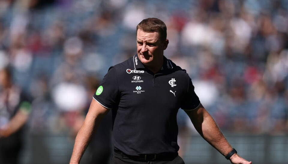 After kicking the first seven goals of the match against Melbourne, and leading by 43 points early in the second quarter, the Blues gave up 15 of the next 19 goals to fall by 23 points.