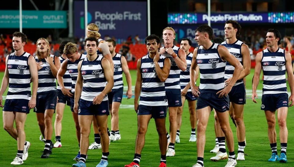 Missing star duo Patrick Dangerfield (calf) and Jeremy Cameron (quad), the Cats were blown off People First Stadium, conceding seven first quarter goals and never getting themselves into the contest.