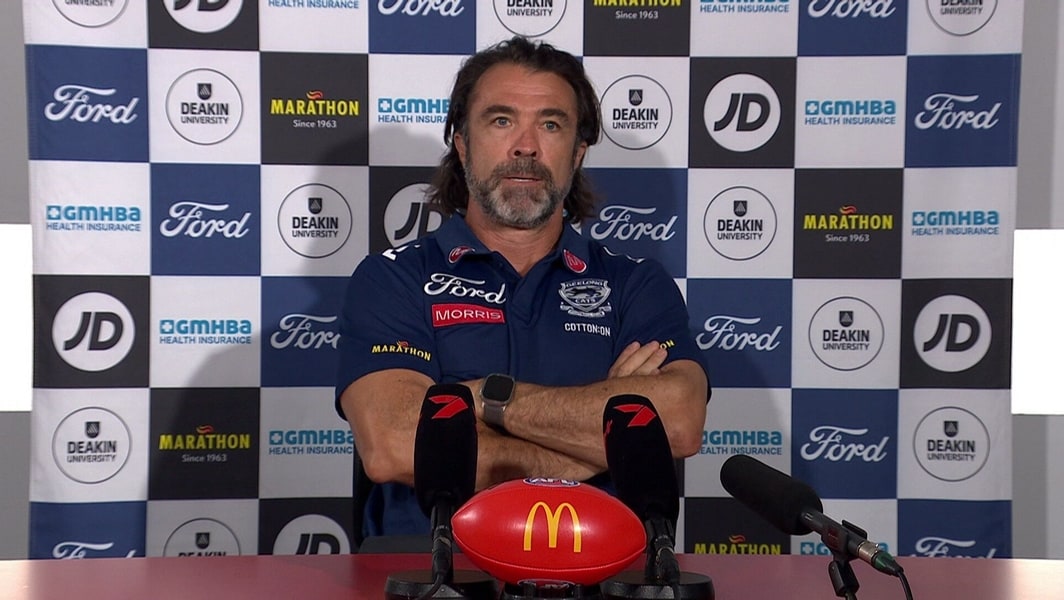 Missing star duo Patrick Dangerfield (calf) and Jeremy Cameron (quad), the Cats were blown off People First Stadium, conceding seven first quarter goals and never getting themselves into the contest.