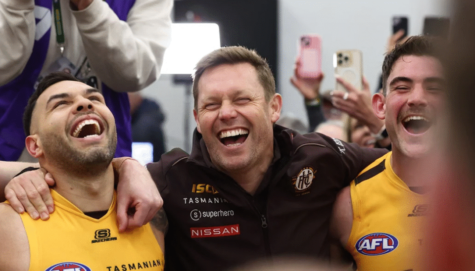 On Friday night, he was back at the same table, but this time with a massive sense of relief and a measured smile to boot. Hawthorn had, in their coach’s words, “exorcised the demons” of not getting over the line at a venue which has been a bit of a bugbear in recent years.