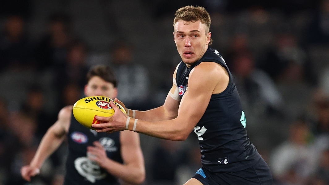 Patrick Cripps in action during the match between Carlton and Port Adelaide at Marvel Stadium in round 23, 2025. Picture: Getty Images