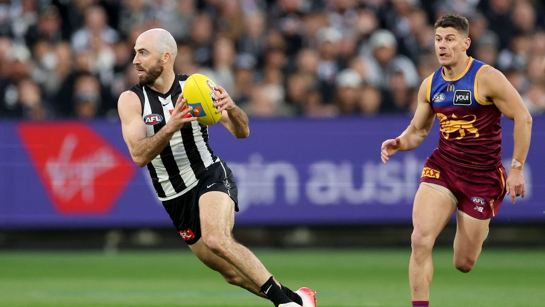 Steele Sidebottom in action during Collingwood’s preliminary final against Brisbane on September 20, 2025. Picture: Getty Images