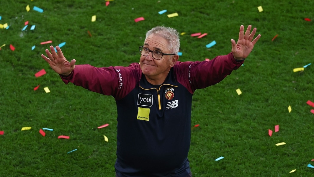 Chris Fagan celebrates after the AFL Grand Final between Brisbane and Geelong at the Melbourne Cricket Ground on September 27, 2025. Picture: AFL Photos
